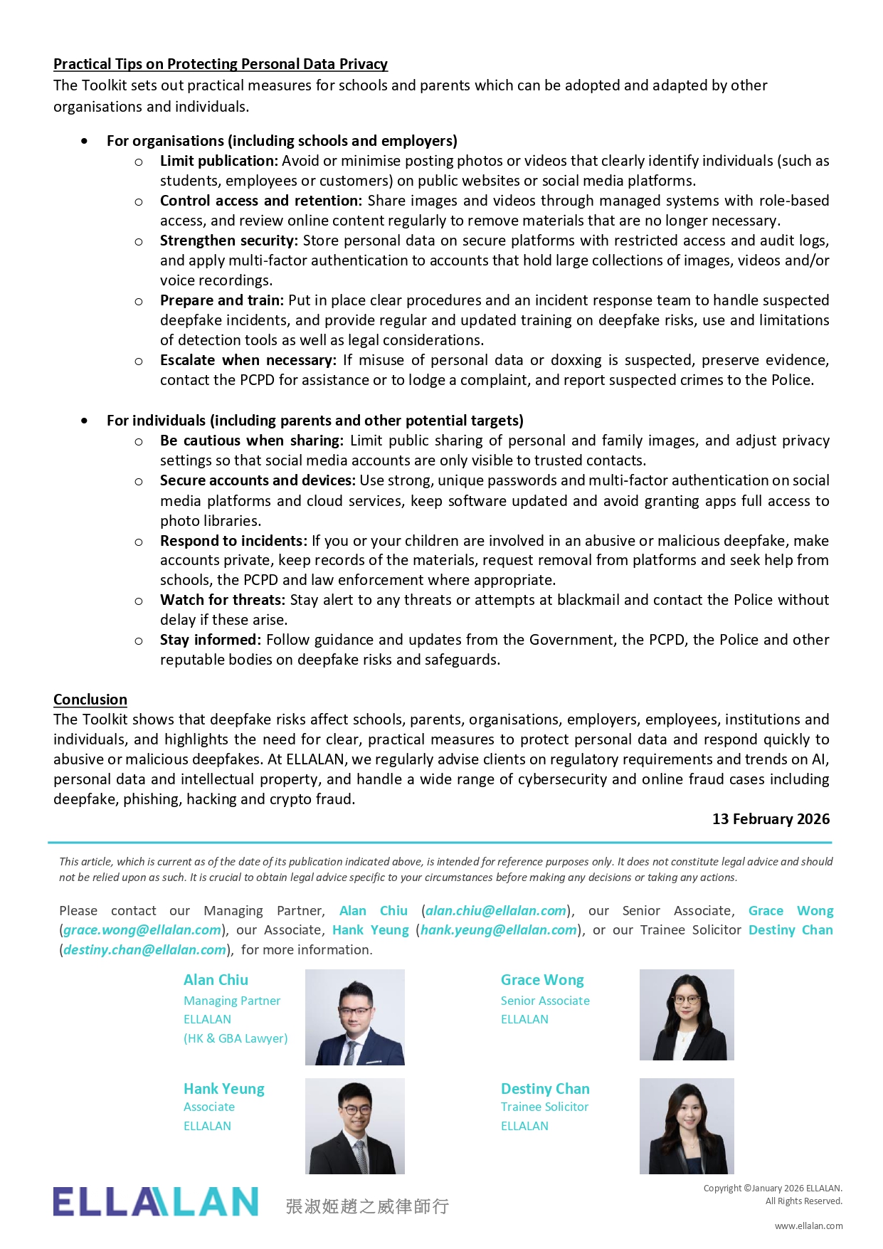 Our Managing Partner Alan Chiu, together with our Senior Associate Grace Wong, Associate Hank Yeung and Trainee Solicitor Destiny Chan, examine the key features of the toolkit and how it supports stronger digital safety and privacy awareness across the community.